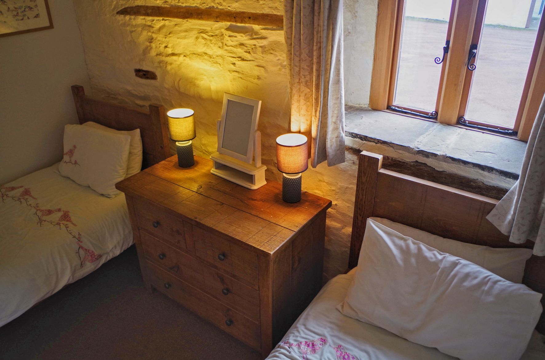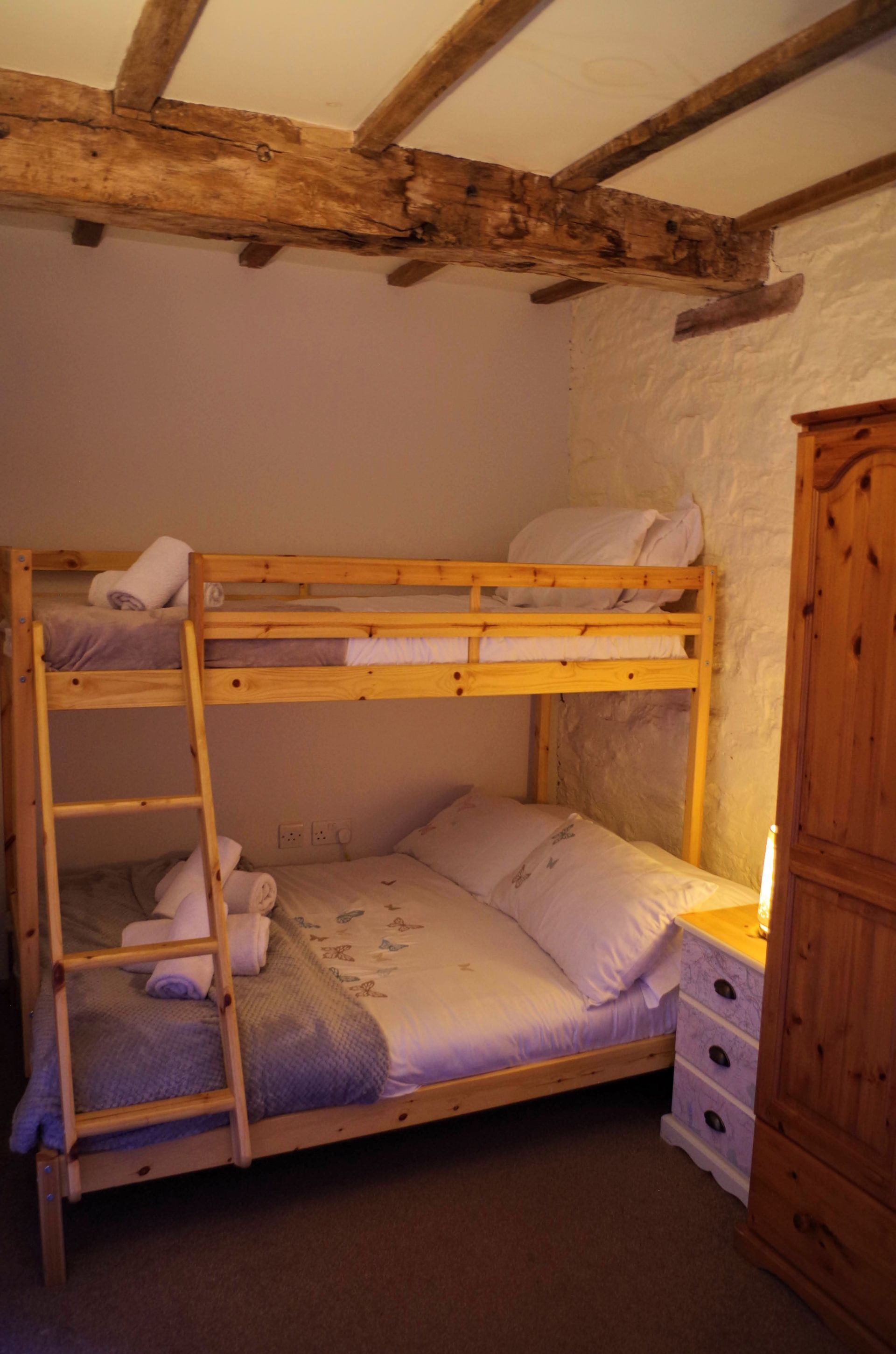 Ground floor: Double en-suite (with toilet, basin, and shower), twin room, bunk room, and a bunk room with a double bed as the bottom bunk. It also has a shared family bathroom with bath (shower over bath).